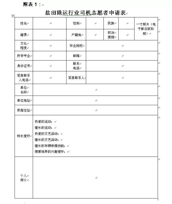 关于招募盐田区港运行业“百名司机志愿者”的通知